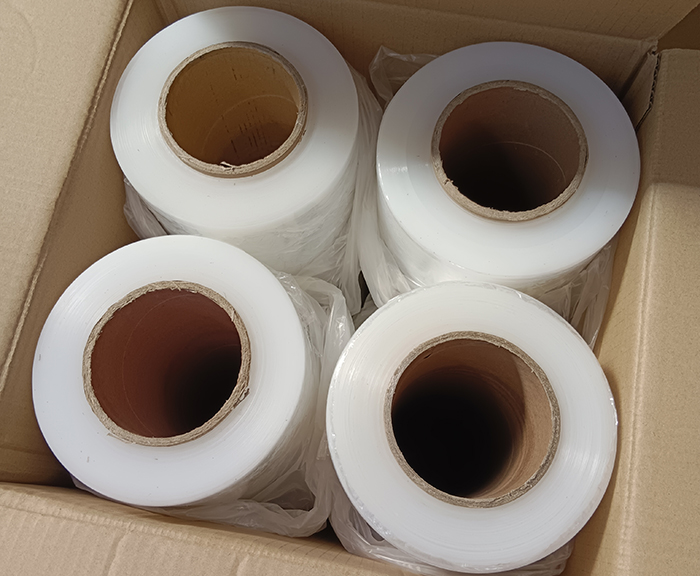 手用拉伸缠绕膜厚度薄,性能价格比好,外观透明,双面粘,无毒、无味、安全性好,使用方便,效率高,抗缓冲强度高,良好的回缩率,抗刺穿,防撕裂性能好,纵横拉伸率达400%以上
